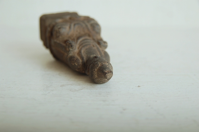 煤けて真っ黒な表情はシルエットを浮かび上がらせバランスの良さを際ださせているようです。彫は簡素化されていますが丁寧に彫られ、細長でどこか現代的なフォルム。