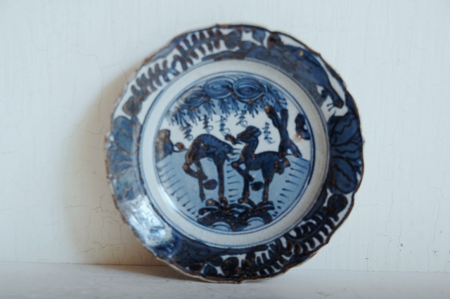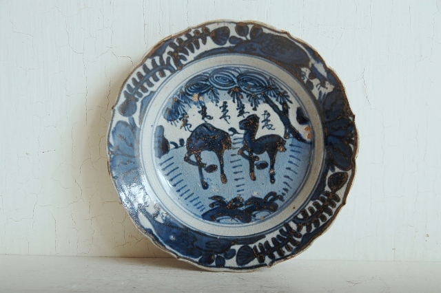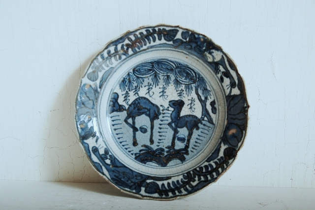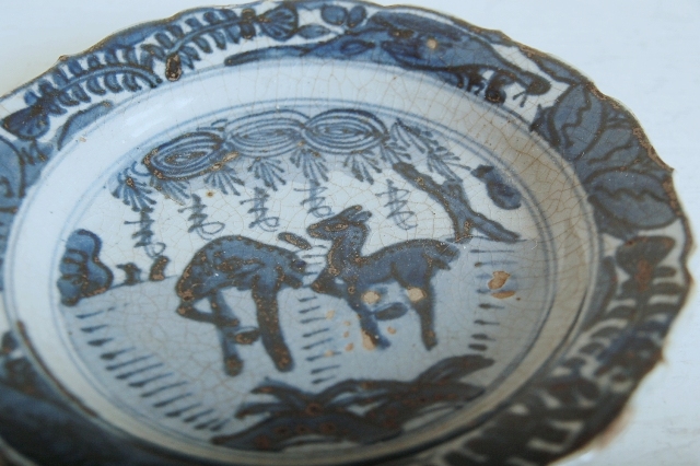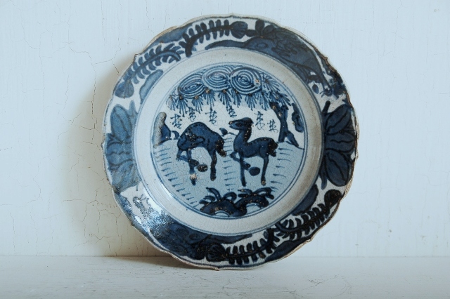 三田焼染付鹿ノ手皿