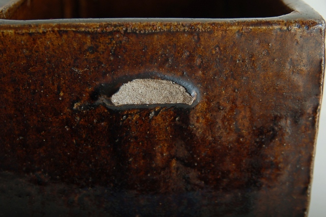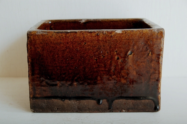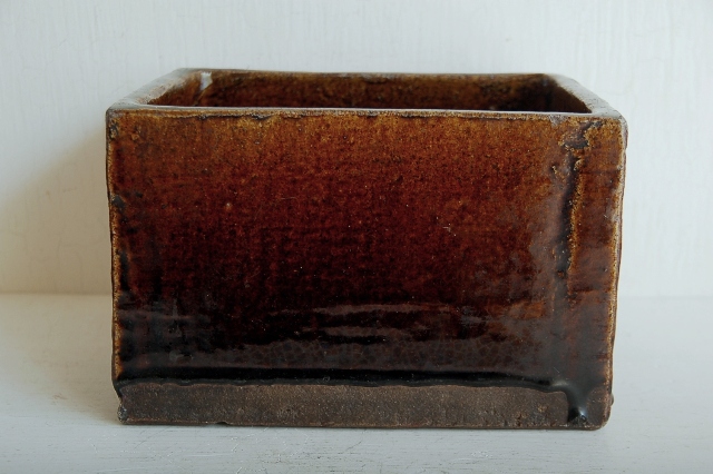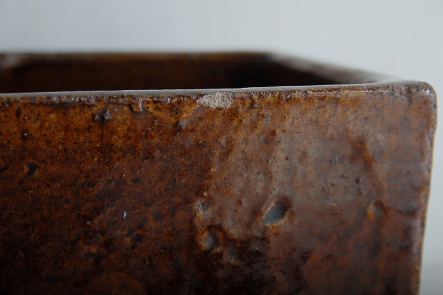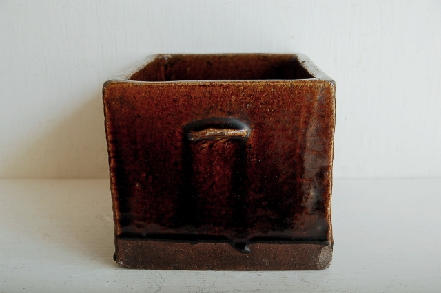 本郷らしい飴釉の鰊鉢。東北の焼き物らしい野趣溢れる表情です。粘土を組み合わせて作った独特の形は本郷でしか見られないこの形は鰊の山椒漬を作るための実用品であったからこそのリアリティが観るものを魅了します。古手の鰊鉢の実際に使用されていたものはなかなか入手しにくくなっております。