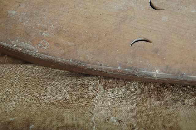 欠損部があり、鉄の釘で補修されたおり、また下部の弦を付ける部分がぐらついております。また手入れは最小限に留めておりますので充分ご理解のうえ御注文下さい。