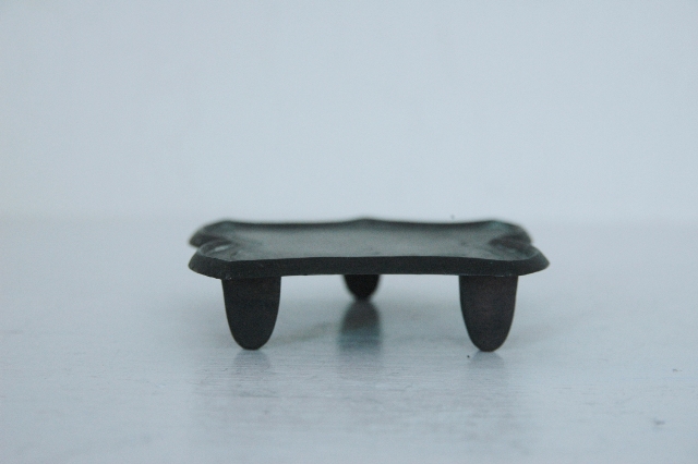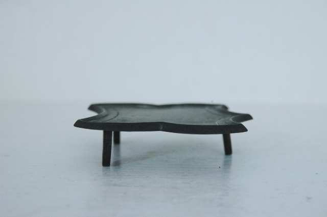 小ぶりの金剛盤。本来は金剛五鈷鈴、五鈷杵、三鈷杵、独鈷杵を安置するための台ですが非常に小さなもので何か別な役割があったものと思います。形は柔らかな印象で密教法具にしては良い意味で厳しすぎません。現代的な感覚を兼ね備えており小ぶりなサイズも嬉しいところです。そのまま飾るもよし、小さなものを飾る台としても重宝します。