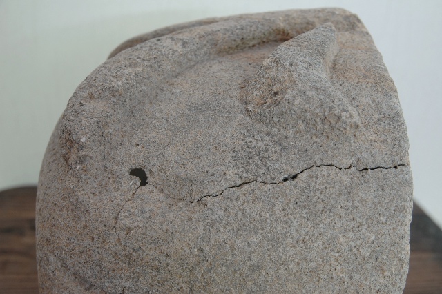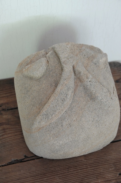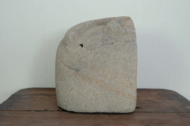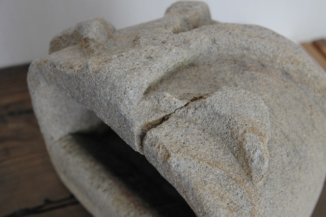 東北でも会津から米澤近郊で多く使われて石の行火。コタツで使用されていたものです。こちらは上部に「火」の文字が掘り出された非常に珍しいものです。東北に住んでいた頃から石行火が好きでかなり扱ってきましたが、彫があるものは初見です。残念なことに大きくひびが入っていますが、何とか割れずに保っています。大きな衝撃などを加えなければ大丈夫だと判断しております。