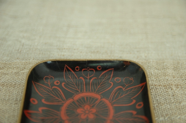 小ぶりの銘々皿。塗りや絵付けも良く吉野塗でも上手のもの。インパクトのある漆で描かれた絵はお好きな方も多いのでしょう。吉野の柄はいつ見ても新鮮で古さを感じません。覆輪に見える金彩もいやらしく感じません。実際に使用されていたものですので、塗りのはがれ、ヒビ割れ、擦れなどございますがご使用できる範囲と判断しております。古いものですので時代相応の経年による変化がござますので画像で充分ご理解の上ご注文ください。幕末頃。