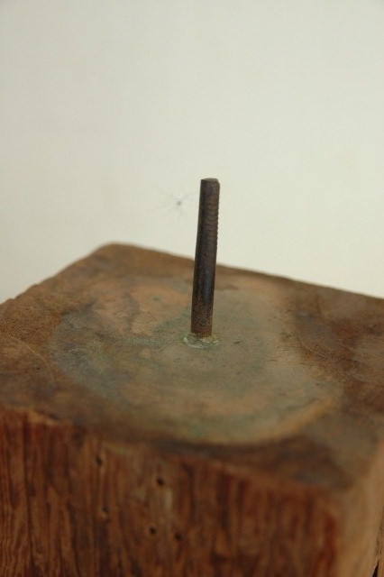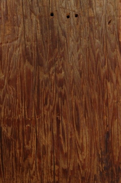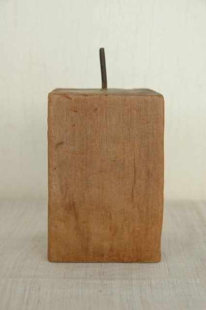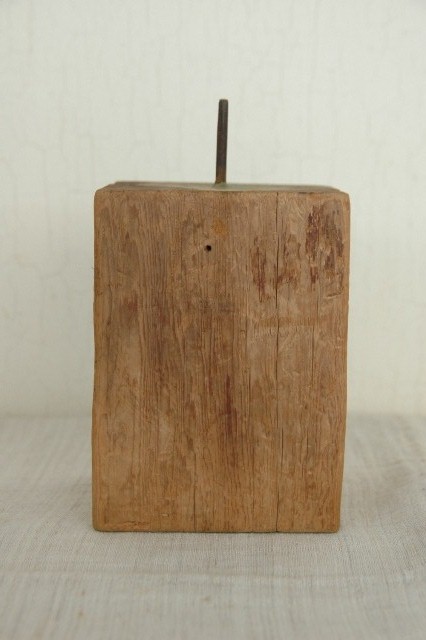 どこの社寺か、どの部材かは断定できませんが、枯れた具合、目の細かな柾目の表情、乾燥に非常に軽くなっている様はまさに天平の古材。焼印などはございませんがその時代の経年変化の様は明らかに異なります。上に釘のようなものが刺さっており、その下部の小口は後に(後といってもかなりの年数は経過しております)切られたものと思います。またその部分には何かで叩いたような跡もございますが、天平の表情は別格。時代があるのに現代的な感覚。古都「奈良」らしい一品。