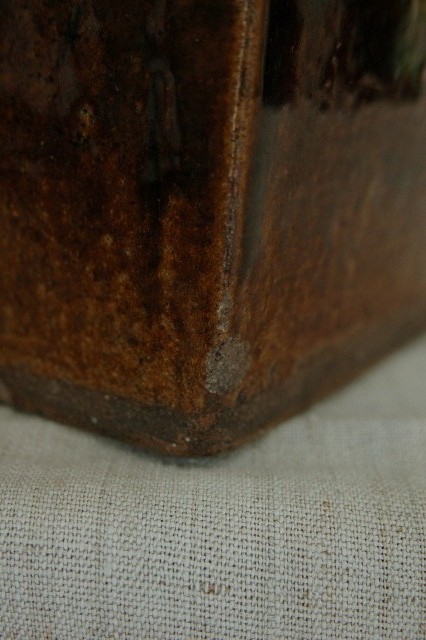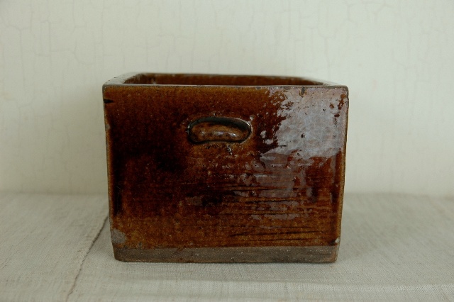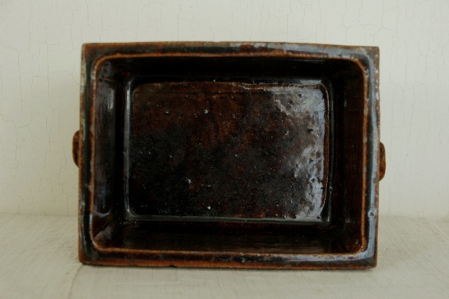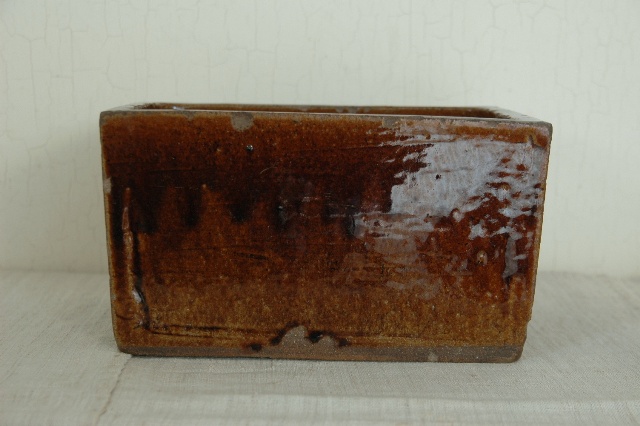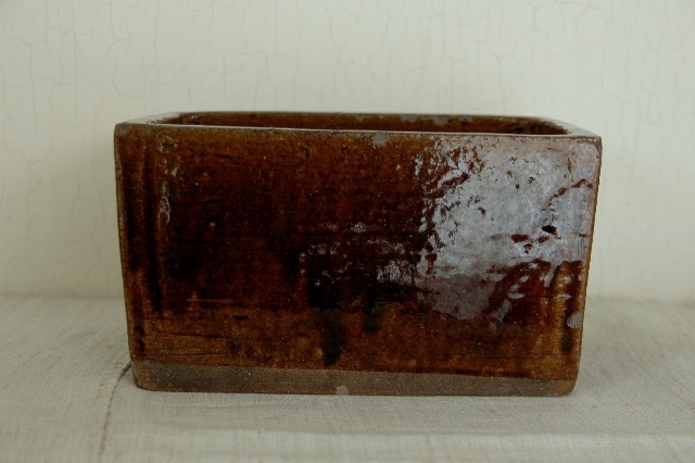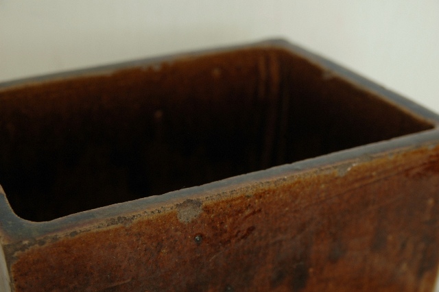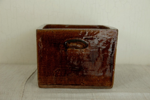 会津の郷土料理「鰊の山椒漬け」を作るために他の地域に類例をみない独特の形状を持っている鰊鉢。昭和33年にはベルギーのブリュッセル博覧会にてグランプリを受賞するほど世界に認められた普遍的なデザインは今見ても新鮮です。会津のものらしい骨のある力強い雰囲気はそこに住む人々の気質が表れているように思えてなりません。小さなソゲはあるものの、状態は良好です。大きさは一般的なサイズで本郷焼特有の飴釉も非常に良く表れております。