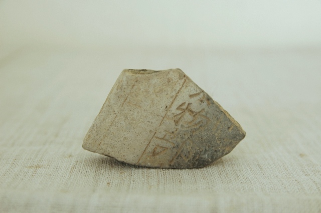 三重県伊勢市の小町塚から出土された瓦経。小町塚瓦経は江戸時代に既に発見され大量の瓦経が収集家の手に渡りました。おそらくこれもその一つだったものと思います。瓦経は、平安時代末期、釈迦の教えしか通じない末法の世がやってくると不安が広がり、弥勒菩薩が再来する釈迦入滅後56億7000万年後まで経文などを伝えようと「経塚」が作られ、銅製の筒に紙に書かれた経文を入れたり、陶器の容器に入れたり、銅板に彫ったものを埋めたりしたものの中の一つが瓦経です。もちろん、両面に書かれてお端の部分で雰囲気も感じます。物と部の文字ははっきりと確認できます。小さいものですが、中世の祈りを今尚力強く感じさせてくれるものです。承安(しょうあん)4(1174)年に製作。