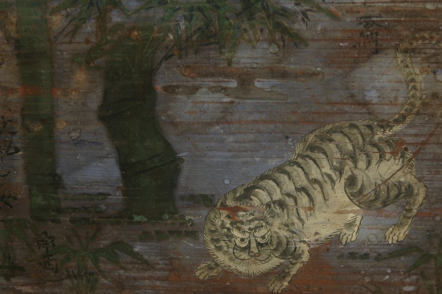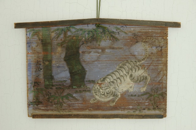 文化の年号は書かれている小絵馬。愛嬌のある虎の絵でほのぼのとした印象です。彩色も残り、絵はかすれているものの充分鑑賞に堪えうる状態です。小絵馬は名もなき絵師や庶民が奉納したもので様々なものがあり興味深い分野です。稚拙で大雑把な味わいのあるものが多いのですが、こちらはうまいとは言えませんが丁寧に描かれ李朝民画のような雰囲気も感じます。久々に良い小絵馬です。江戸期。
