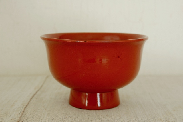 使い勝手の良いサイズの朱塗りの碗5客。5つ揃っておりますのでセットでの販売となります。庶民的な味わいのある気兼ねなく使っていた品ですが、形も良く、塗の状態もいいので普段使いにお奨めの品です。もちろん、使われてきたものですので経年による変化は見られますがこの手の碗の中では状態は良好と言えます。塗のハゲなどもなく、シンプルな形ですので現代の食卓にでも違和感ないでしょう。時代相応の経年による変化、細かな傷、少しのハゲ、ひびなどの使用感はございますので充分ご理解の上ご注文ください。