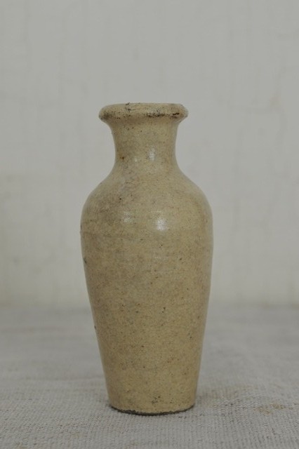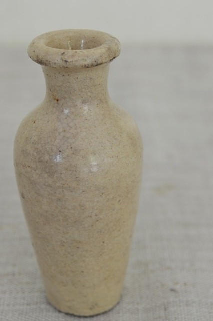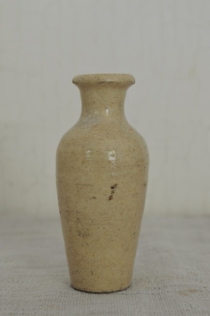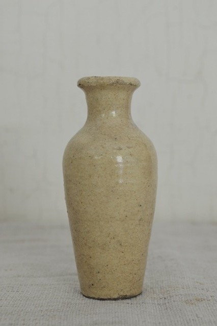 小ぶりの瀬戸の仏花器。白というよりは少し黄色がかって瀬戸らしい肌の小さな、小さなもので、一輪挿しなどに最適。この小ささはなかなか出会えるものではございません。口の縁廻りに窯疵、釉ハゲなど少々ございますが、大きな欠点はなく、状態は良好です。少々甘めです。瀬戸は多くあれどこのサイズは希少です。江戸時代。