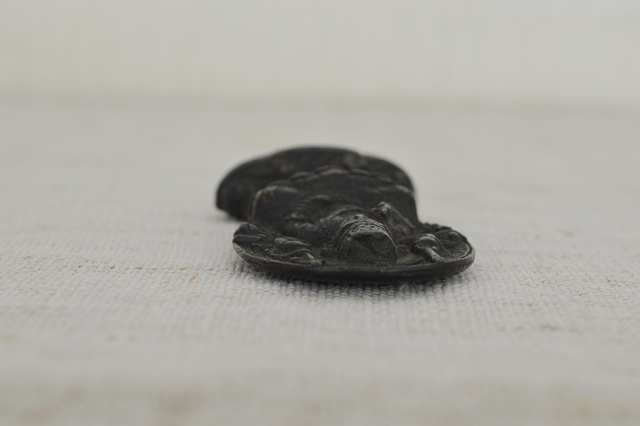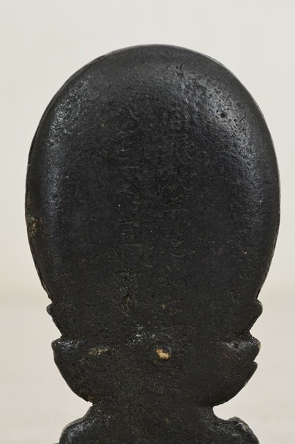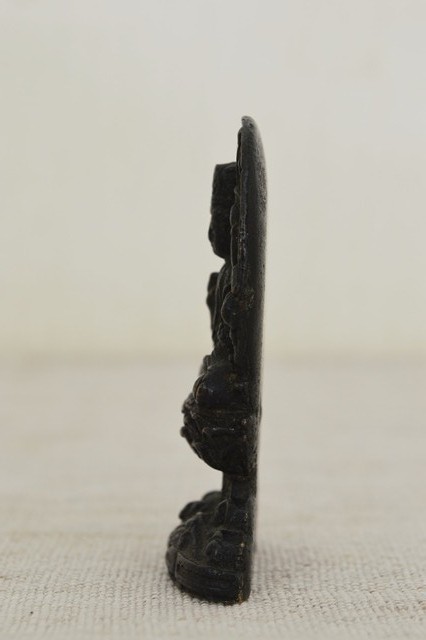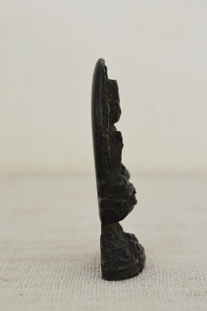 弁財天の懐中仏。厨子はありませんが抜けもそこそこよく楽しめる品です。真鍮色の黄銅で時代は江戸後期〜幕末頃のものでしょうか。小さいながらも存在感があり自立するのも嬉しいです。裏面に色々と文字がありますが詳しい解読はしておりません。身近に置いて楽しんでいただきたい品です。状態は良好。
