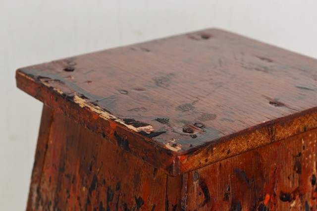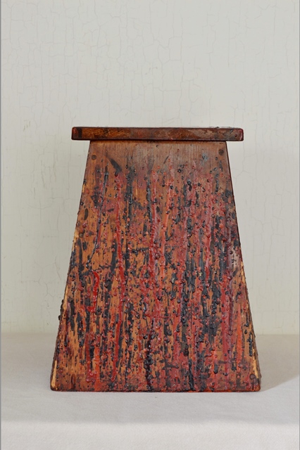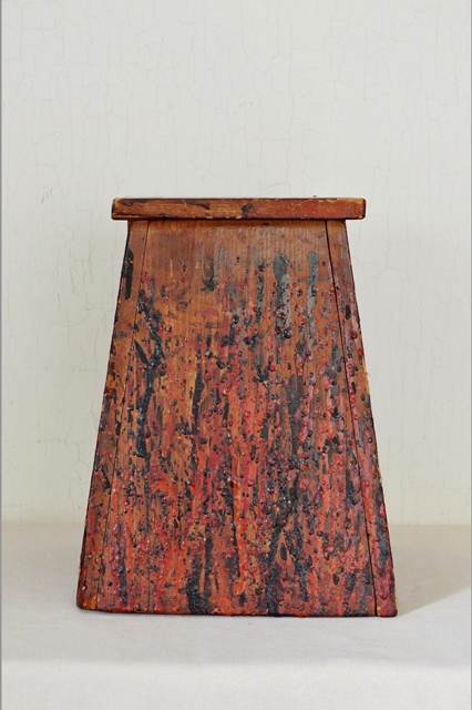 会津で塗師が碗などを塗る際に使っていた台。このような職人の道具は使い易いように各々が作っているので同じものはほぼなく使っている人の個性が表れるものだと思います。垂れた漆も無作為につけられたものですので自然でいやらしさを感じません。そのままオブジェとして飾っても良いですし、小さなスツールとして使っても面白いかと思います。台が動かないように内部に重りが入っており、見た目よりずっしりとしており、売るための製品ではないのでラフな仕上がりで、また実際に作業で使っていたものですので疵、使用感などはございますので充分ご理解の上ご注文ください。昭和期。