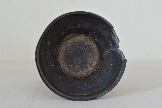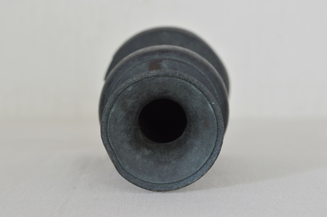 緑青に覆われた肌にシャープさを兼ね備えた造形は存在感があります。口に凹みと高台に痛みはございますが、それも時代を経てきたもの故の姿とご理解いただければと思います。地は銅色で本来は鍍金されていたと思いますが鍍金は残っておりません。また高台が大きめですので時代は室町時代頃と判断しております。とはいえ充分時代を感じる表情は花映えすることと思います。