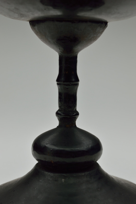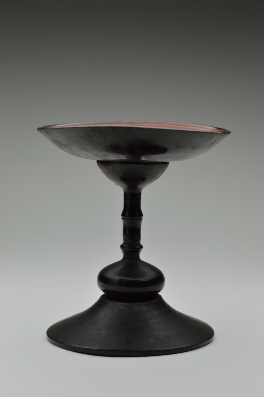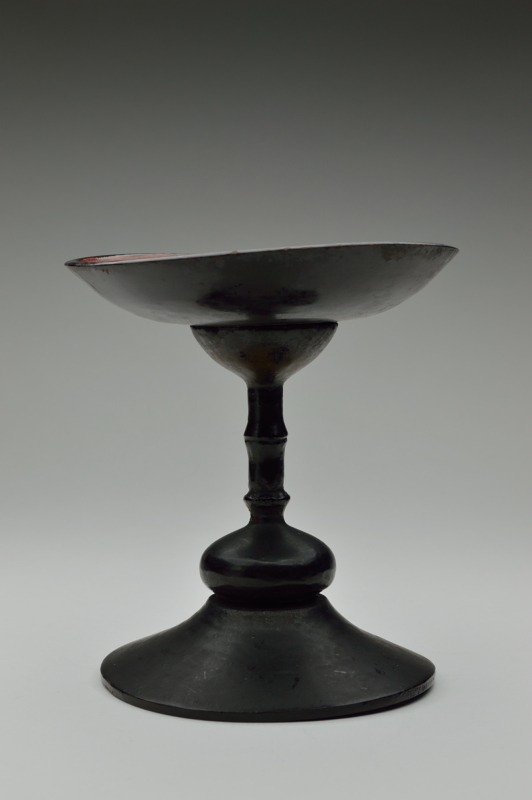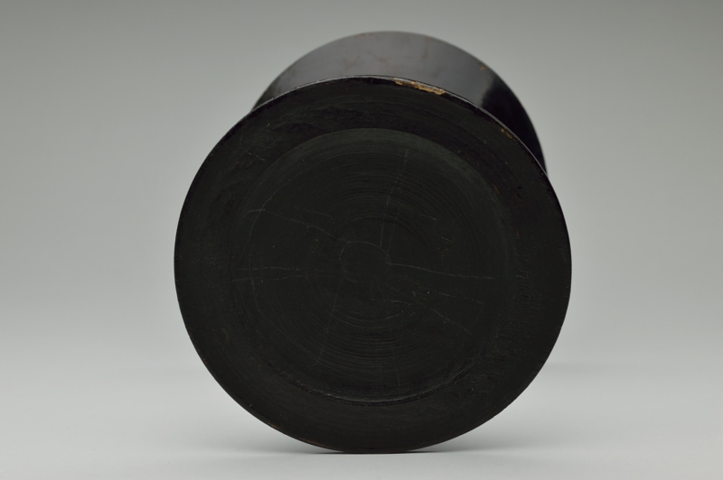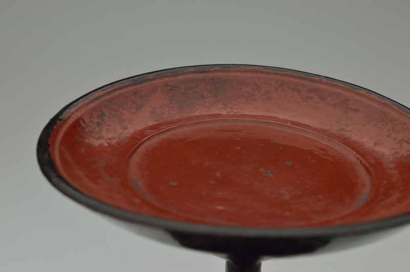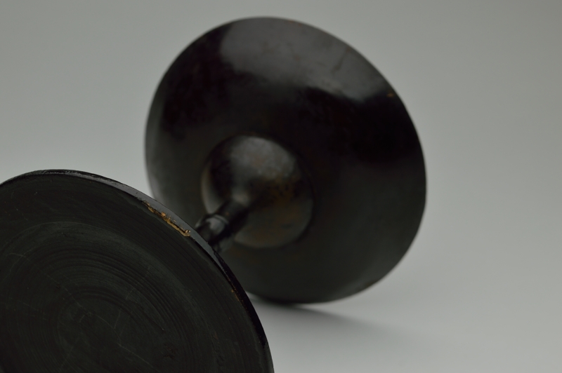 厚めに塗られた漆ながらも、非常に繊細な轆轤で仕上げられた木地です。経年による乾燥で反りなども見られますが時を経たから出る風格は画像からも感じて頂けると思います。底の木地の仕上を確認する限り古い仕上のもので仏飯器として使われたものと思いますがモダンで無国籍なデザインです(イームスのアレをギュッと細身にしたようです・・・)。汚れ、反り、擦れなど経年による変化がございますので画像にて充分ご確認下さい。