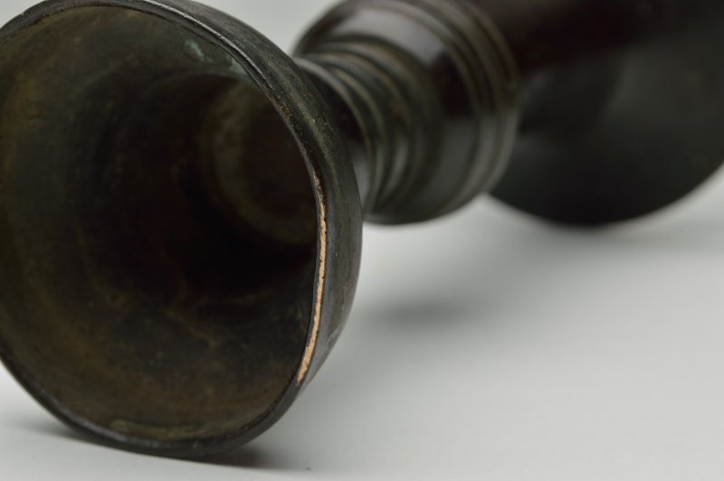 サイズ感、抜けの良さ、風格のある肌艶はなんとも言えない魅力があります。縁周りには、小縁もありシャープさも感じます。花を立てるには最適な花器でしょう。地は銅色(赤)が強く、肌艶は時代を感じさせます。縁に少々の歪み、下部にへこみなどございますが気にならない程度と判断しております。