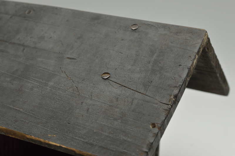 小さく、素朴な厨子。至って簡素な出来で余計なことをしていないところが魅力です。まるでおもちゃの家のようで好感が持てます。明治頃のものと思いますが、昭和に入ってから釘で補強したようです。