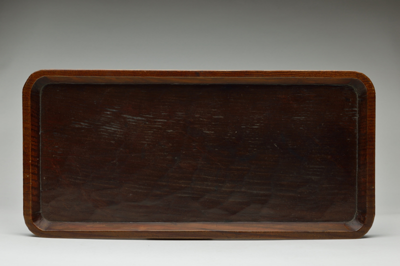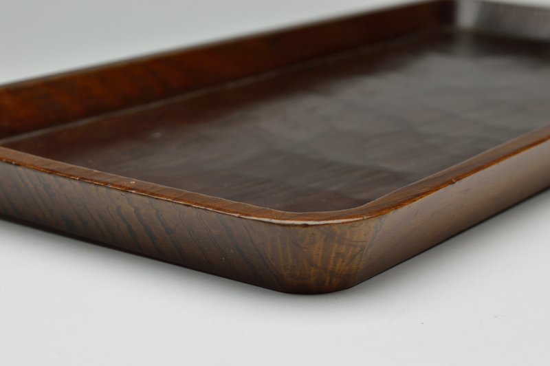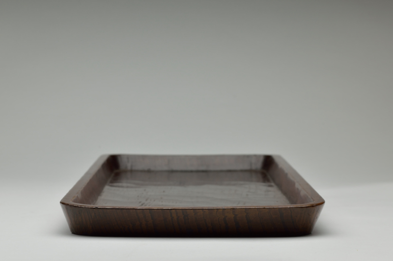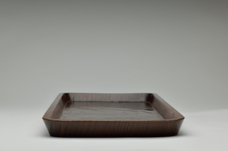 一見簡素な松の盆ながらも、よく見ないと気がつかない均等な鑿跡、入隅の真っ直ぐな線、艶のある表情は品の良さを感じます。茶席で莨盆として使われていたものですが、サイズは晩酌にも、煎茶にもお使いいただける丁度良い使い勝手の良い大きさです。状態は良好。共箱です。