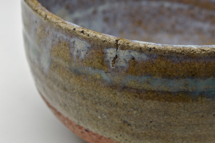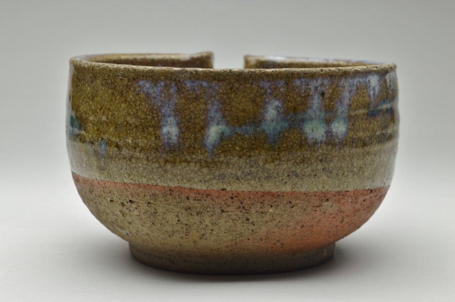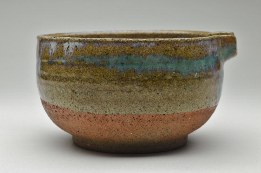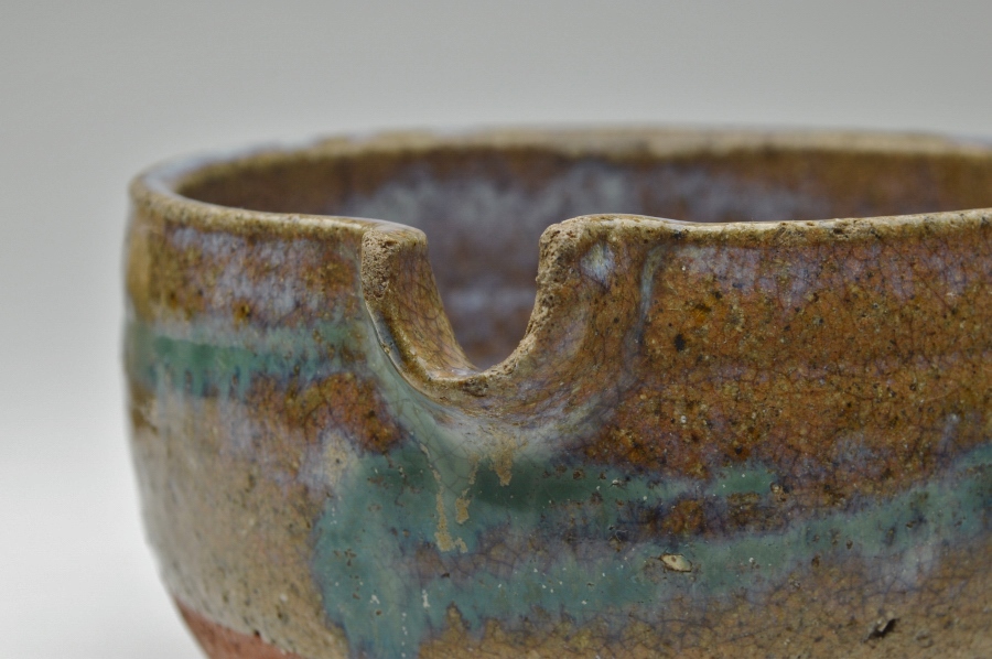 鰊鉢で有名な本郷の片口。厚手で無骨ですが柔らかみがあるフォルムは他にはない形かと思います。使い込まれたようで見込みには程よい味があります。緑釉や斑釉の垂れも民藝のものらしく奇をてらってない健全さを感じます。ニュウ、ヒビがあり、使い込まれたものです。完品とは言い難く、お使いいただける範囲内のもと判断しておりますが、参考品とお考えの上、充分画像でご確認の上ご注文下さい。大正期。