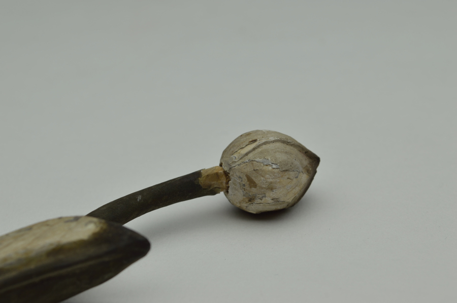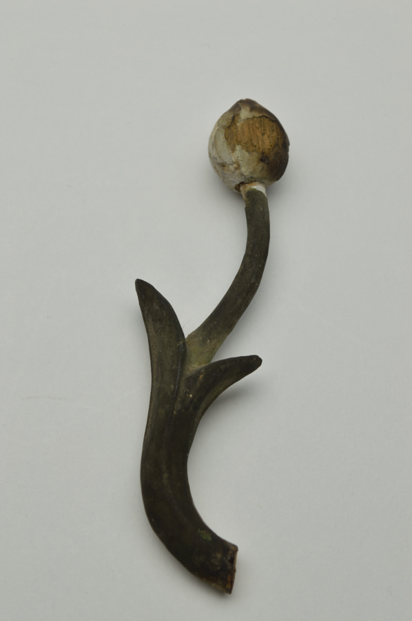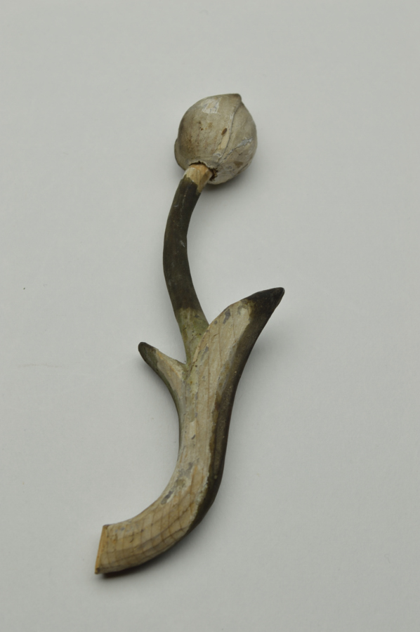仏像の持物、もしくは装飾の一部だったと思われる木彫の蓮花の残欠。小さなものですが、初なりで、彩色も残り、存在感はございます。花と茎は別なつくりで差し込み式です。経年による変化、汚れ、擦れなどございますので充分御理解のうえ御注文ください。