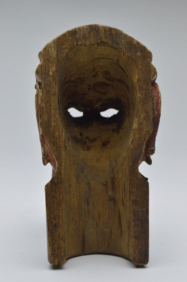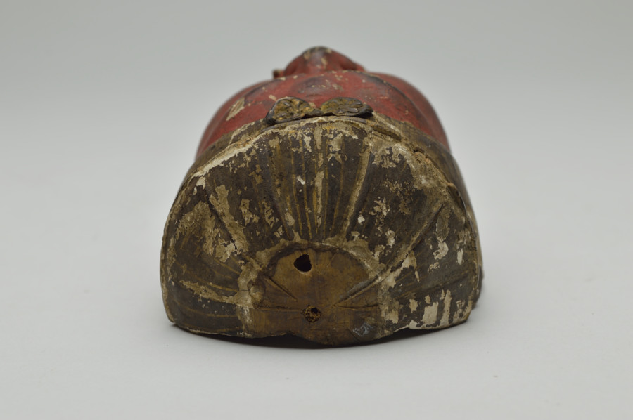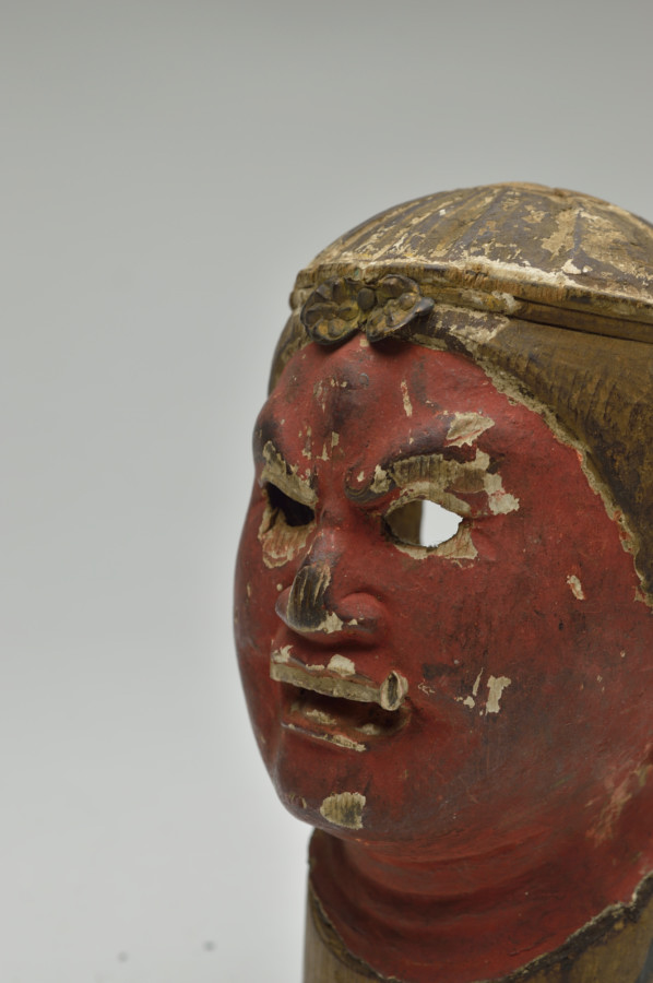 厳しさを持ちながらもどこか温かみを感じます。不動明王なのか断定はできませんが、元は玉眼の入る中世の迫力満点の仏像だったことは容易に想像できます。小ぶりなように感じるかもしれませんが、民間に良くあるものよりも大きく、この部分から推測しても本来は寺院にあったものと思われます。画像は自立していますが自立はしません。布は撮影用ののものですので付属いたしません。鎌倉〜南北朝時代。