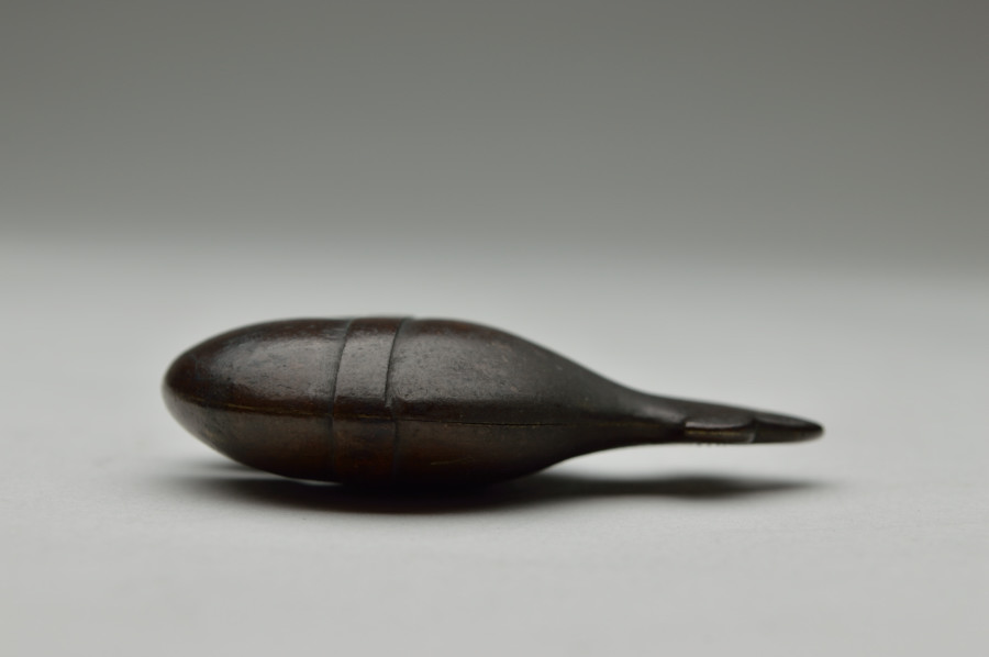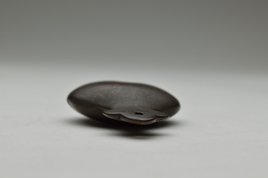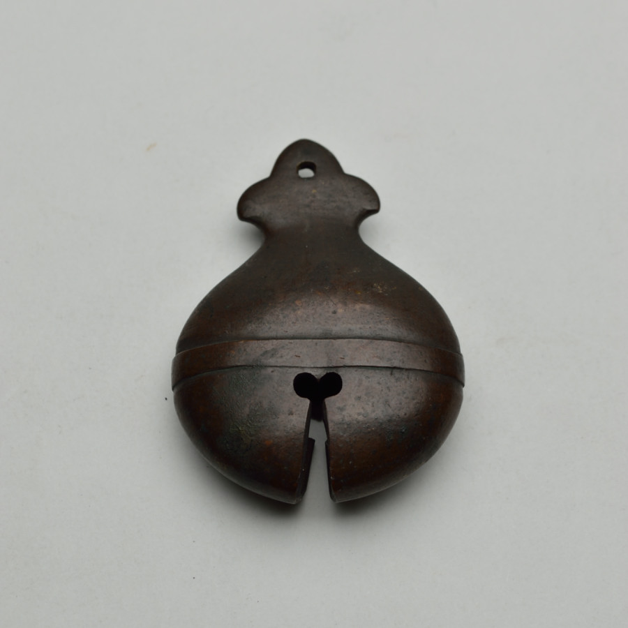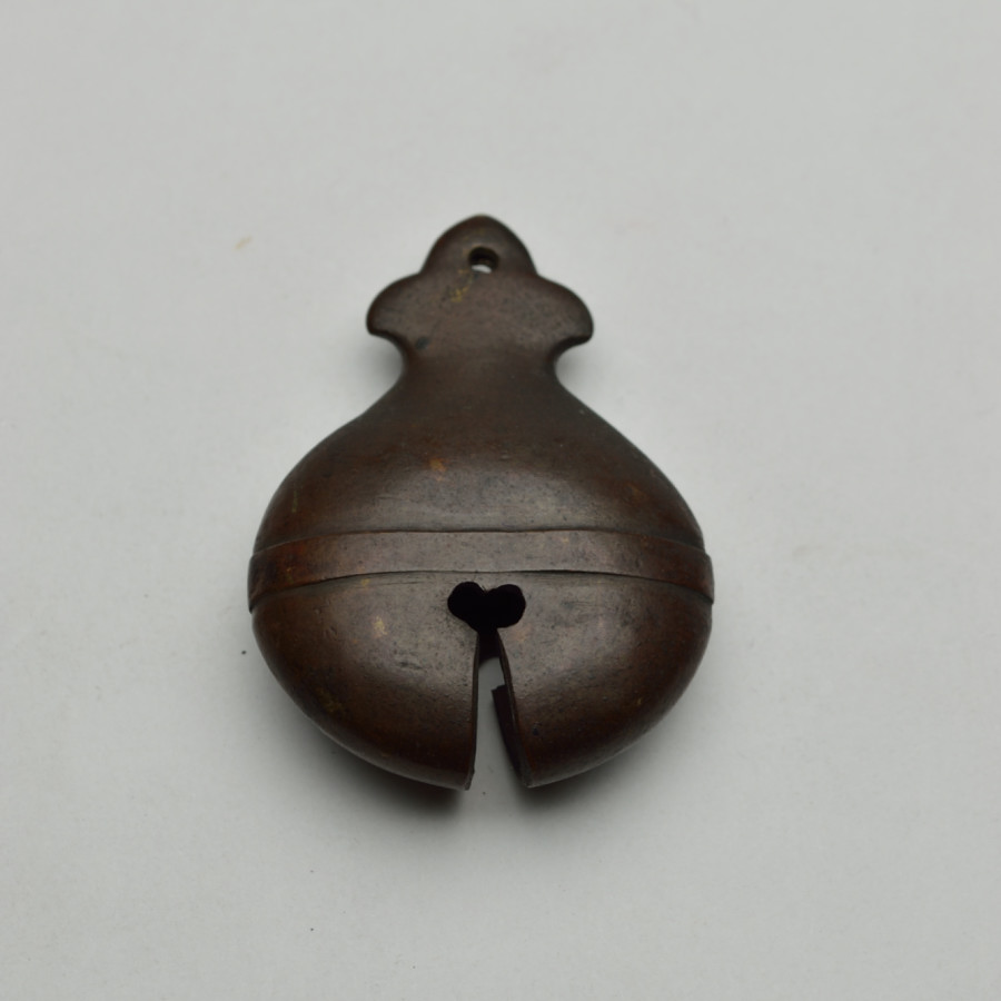 瓔珞のような装飾の一部分であったと思われる銅製の鈴。製作当初は鍍金が施されていたと思いますが、残ってはありませんが古い銅ならではの肌合いは魅力があります。玉はなく、音はしませんが中世を感じさせる素材、容姿は小さいモノながらも存在感があります。