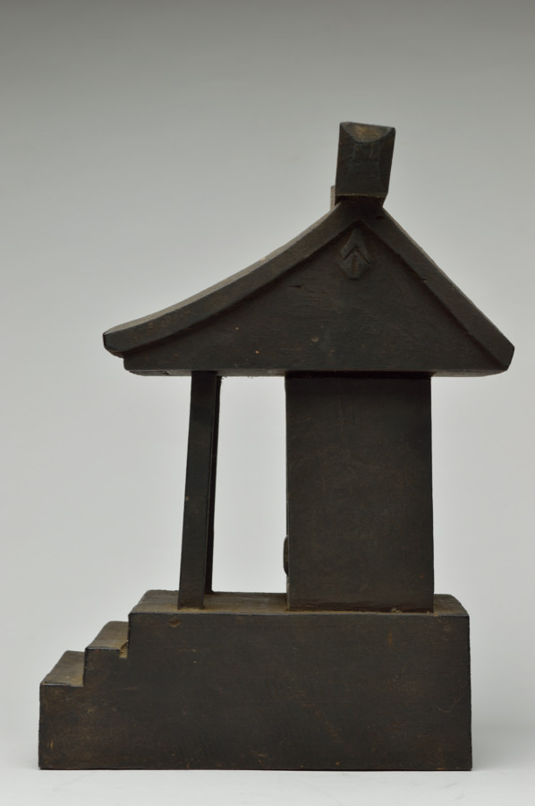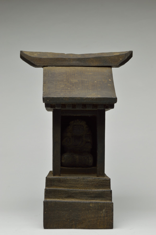 会津より出た御社に入った大黒様。御社はなかなかの出来です。真ん中の部分はくり貫かれており重厚感があります。真っ黒に煤けた風合いも申し分ありません。大黒も丸みのある東北らしい素朴な出来です。江戸時代。