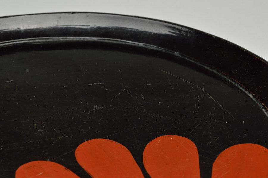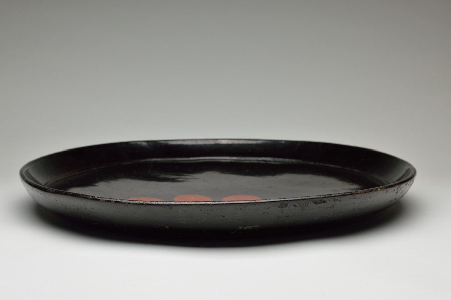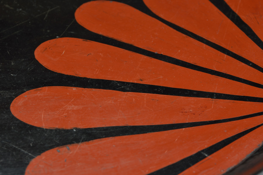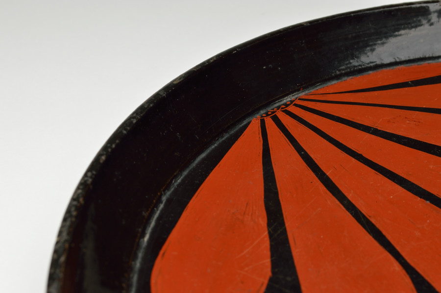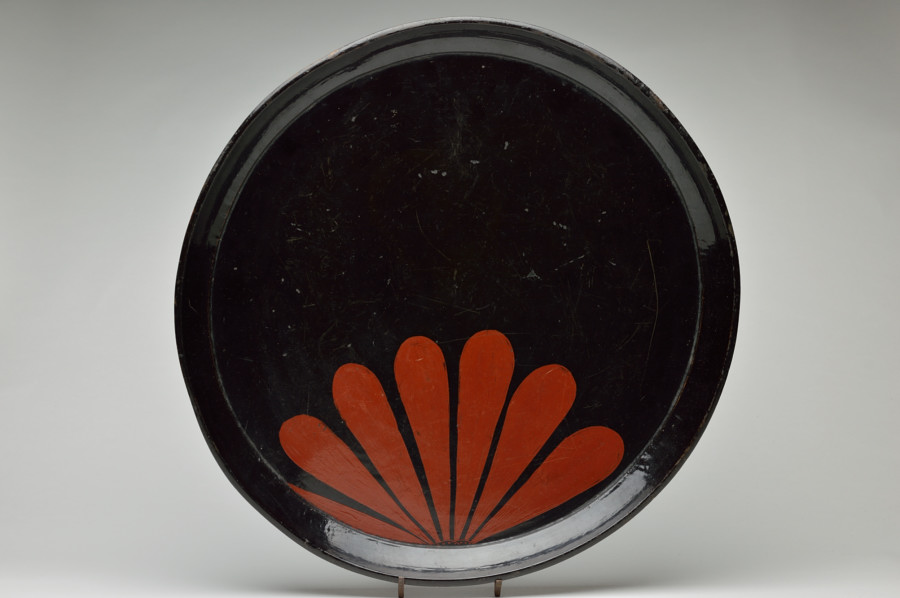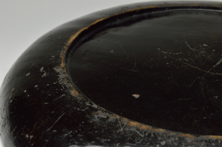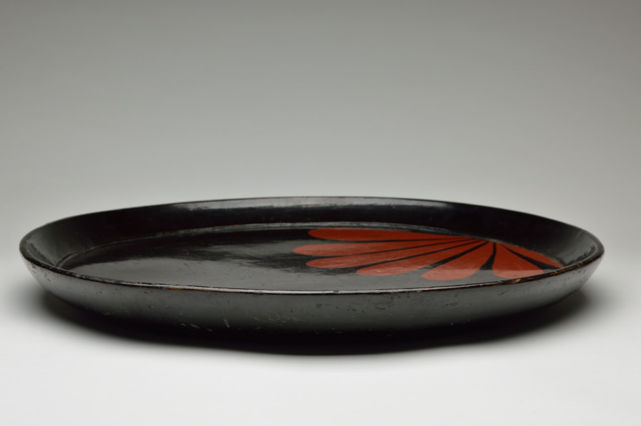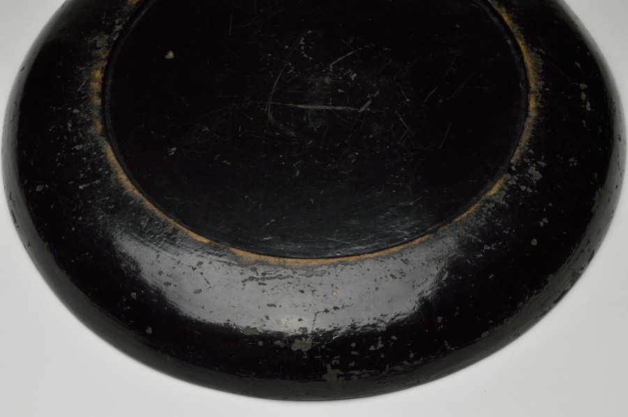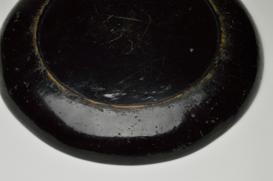 菊花ですが、全体を描くのではなく余白を生かしたデザインは秀悦。良い菊花盆自体、近年少なく、目にしなくなってきましたが、ましてこの図柄は探してもそう見つかるものではありません(私は初見です)。漆の質が良いので浄法寺塗と判断しましたが描き方は丁寧で朽木などの他の産地である可能性もあります。大きな欠損もなく概ね状態は良好。画像でみると小さく感じますが晩酌などに最適な寸法。江戸時代。