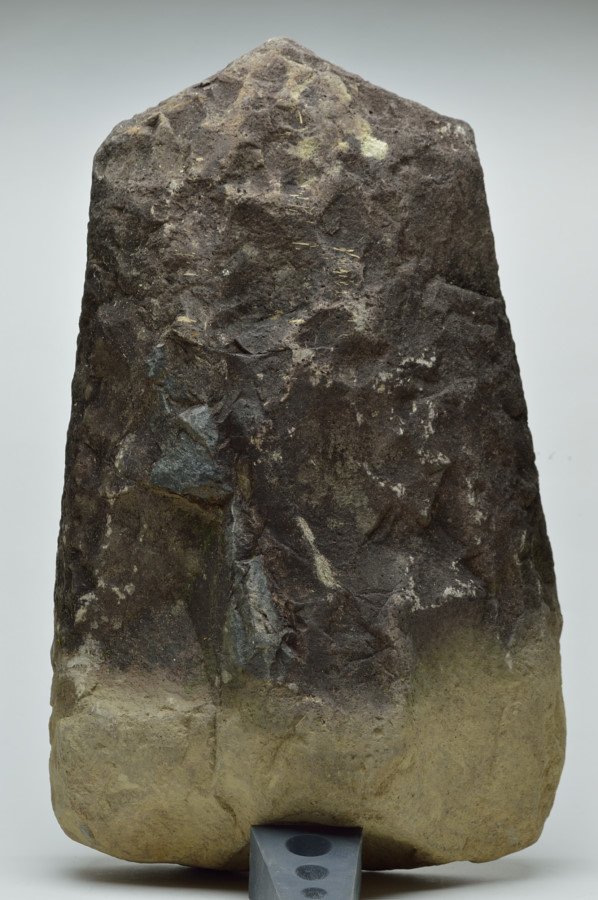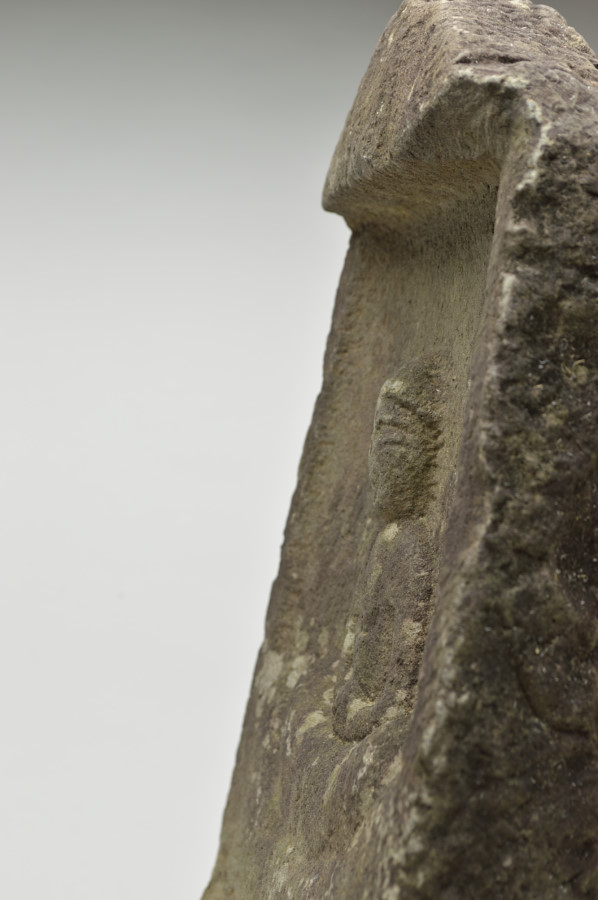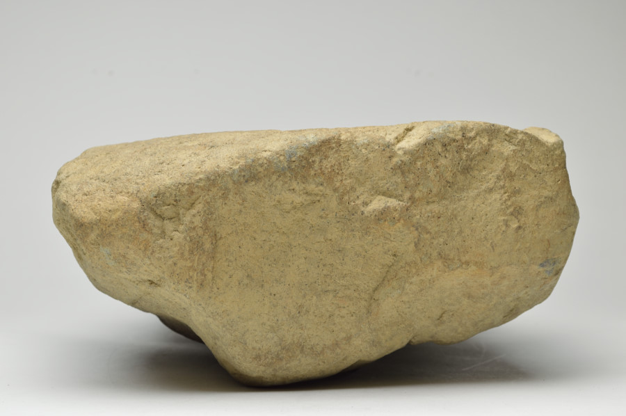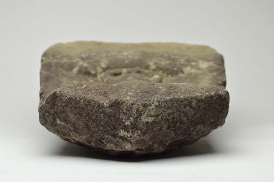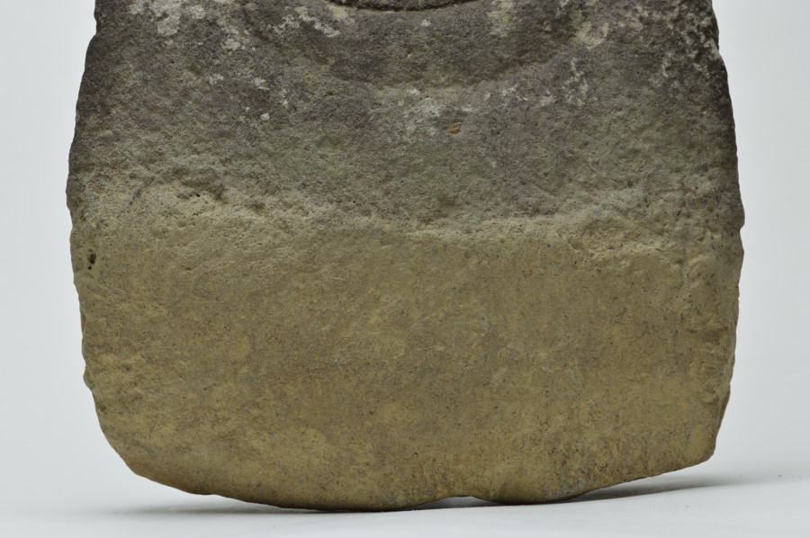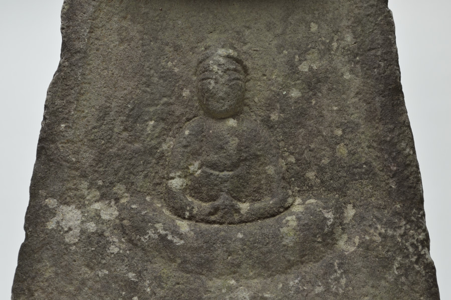 半肉の浮彫がまるで懸佛のような石仏「定印阿弥陀如来坐像」。身の詰まった重い石ですが花崗岩よりやや柔らかな質のものです。風化して荒れてるものが多い石仏ですが、表情、姿、結んでいる定印も出ているのが好ましいです。表情は、また、笑みを浮かべているようで微笑ましいです。素朴でありながらも、品格があります。畿内のもの。自立はしません。南北朝〜室町時代。*倒れないよう押さえに使っているものは撮影用のものですので付きません。