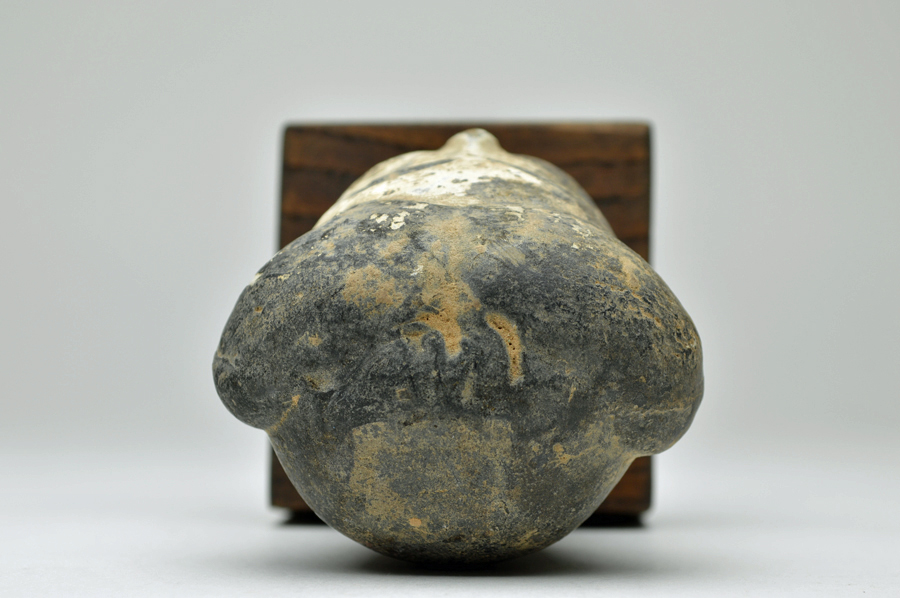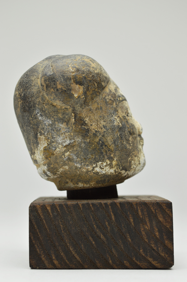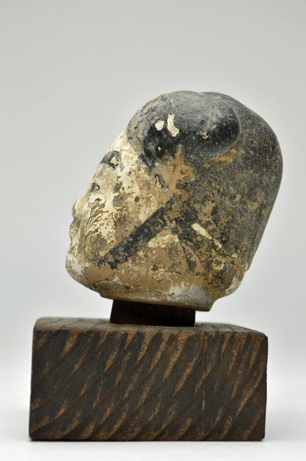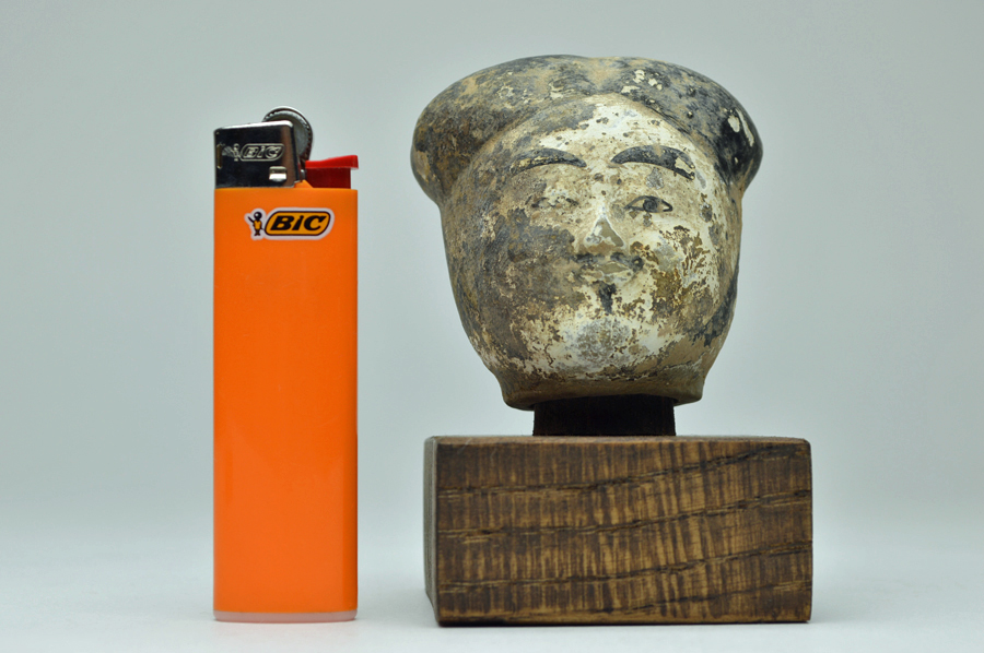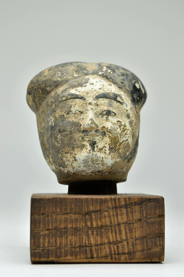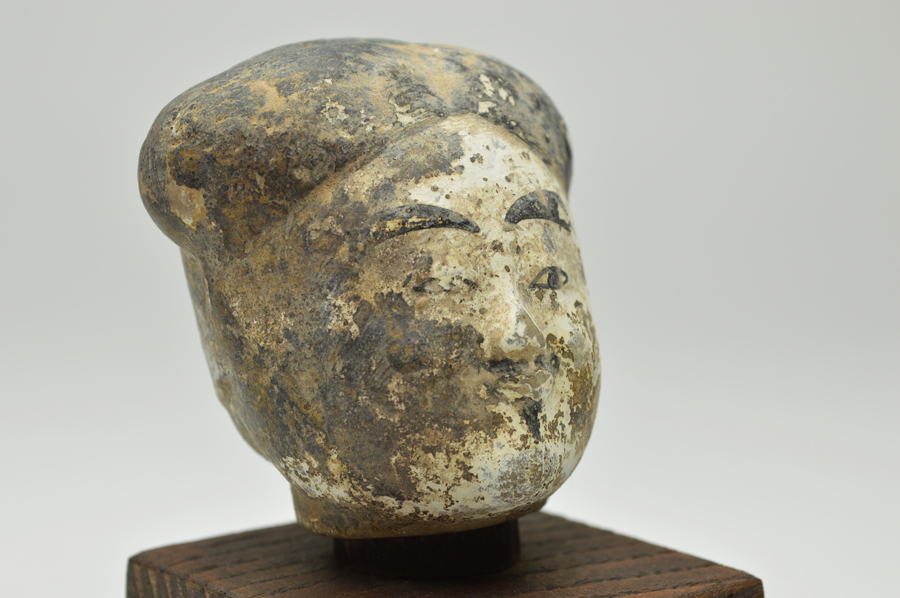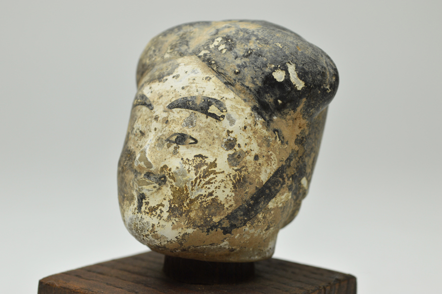 頭部のみの俑ですが、柔らかな表情で彩色も比較的に綺麗に残っております。聖徳太子を感じさせるような日本人にも馴染みやすい造形です。西漢(BC206〜AC8)長陵倍葬墓出土。箱無。